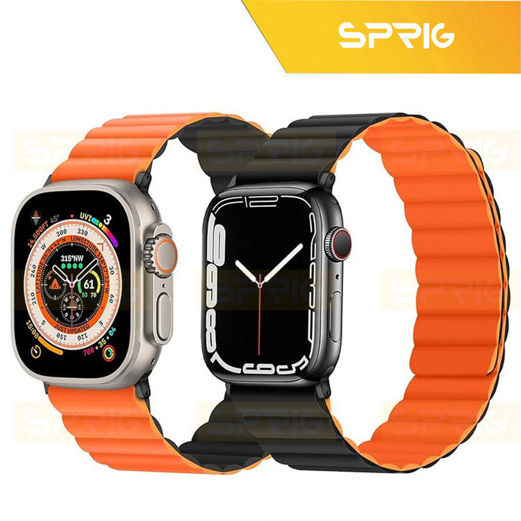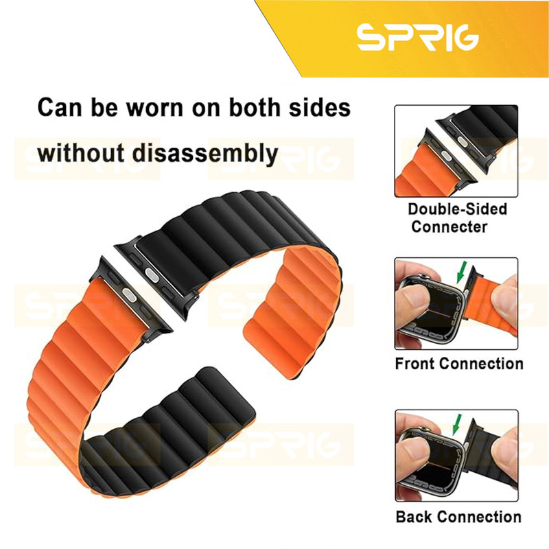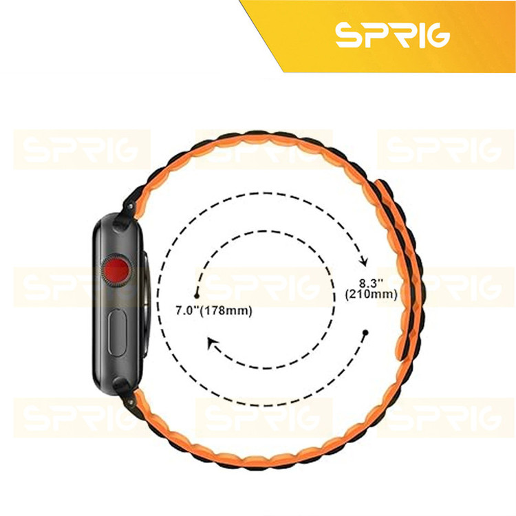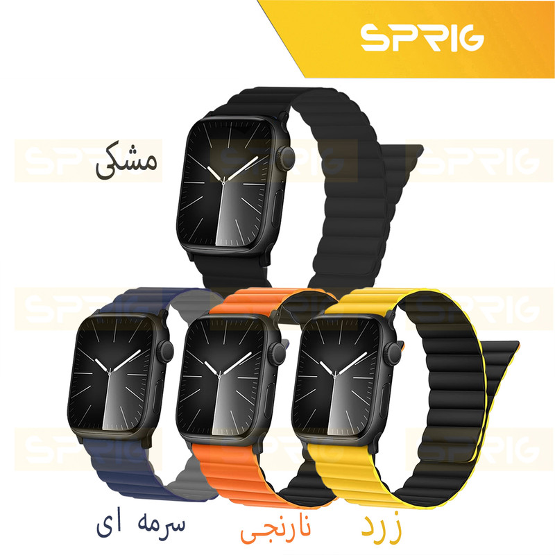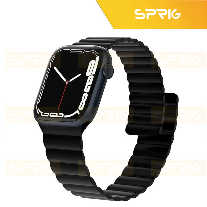 بند اسپریگ مدل Silicone Magnetic Link BK مناسب برای اپل واچ سری Se/1/2/3/4/5/6/7/8/9/Ultra/Ultra2 سایز 42/44/45 میلی متری
