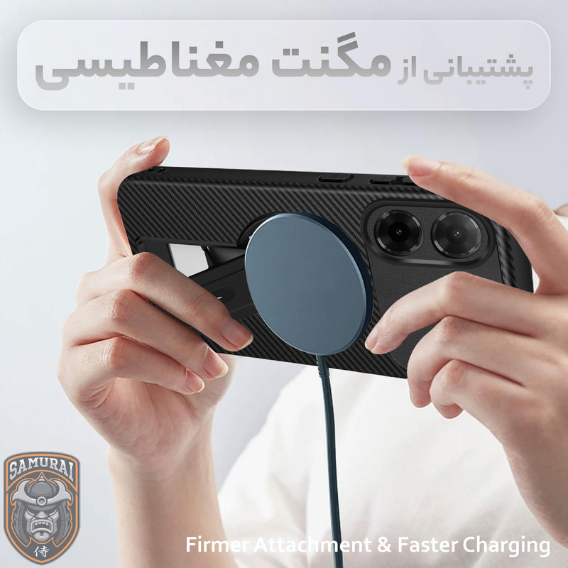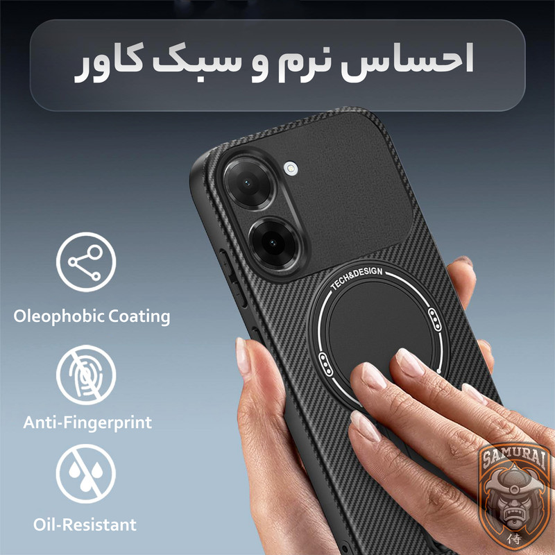قاب شیائومی Redmi A5 4G / Poco C71 از برند سامورایی مدل Carbon Stand با طراحی الهام گرفته از فیبر کربن و ساختار مقاوم TPU، ترکیبی از زیبایی و محافظت حداکثری را ارائه میدهد. این قاب با قابلیت استند شدن، تماشای ویدئو و تماس تصویری را سادهتر میسازد و به لطف پشتیبانی از هولدر مغناطیسی، استفاده در خودرو را کاملاً راحت میکند. کلیدهای نرم و دقیق همراه با پوشش کامل لبه ها و دوربین، امنیت گوشی را در برابر ضربه و خط و خش تضمین میکنند. با انتخاب قاب سامورایی مدل Carbon Stand، استایل لوکس و حفاظت حرفهای را با گوشی Xiaomi Redmi A5 4G / Poco C71 هم زمان تجربه خواهید کرد.