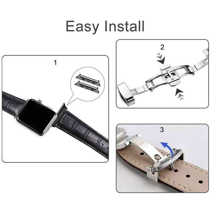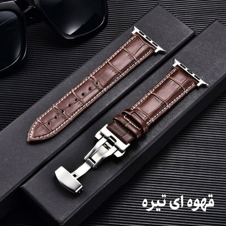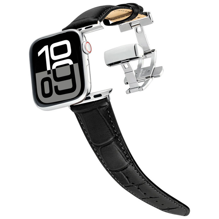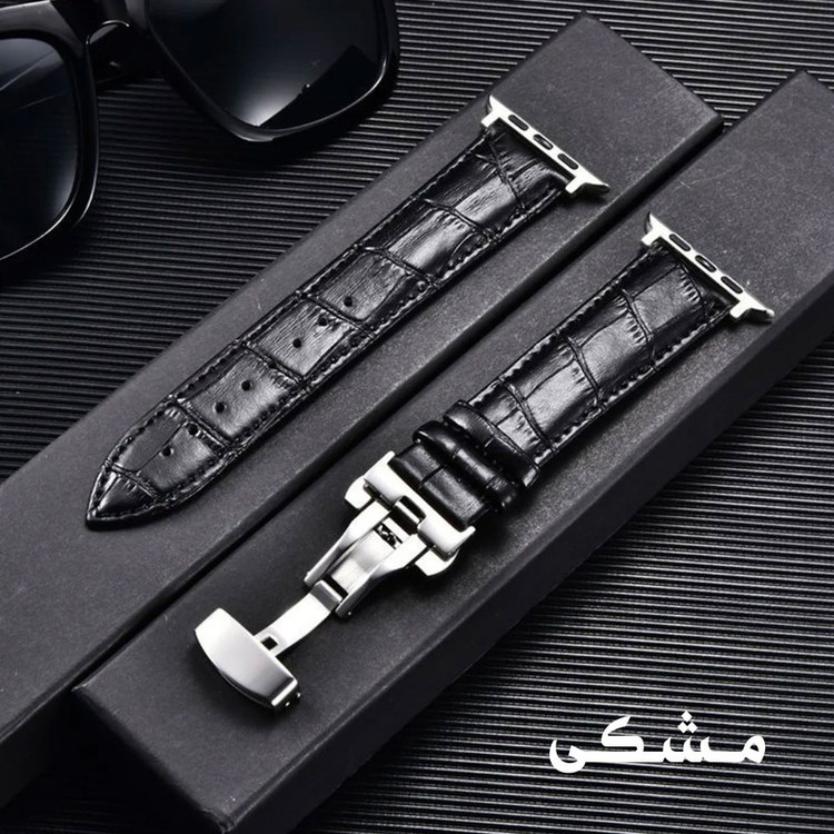 بند کینگدام مدل Crocodile Leather Butterfly مناسب برای اپل واچ سری 10 سایز 46 میلی متری