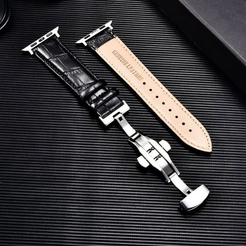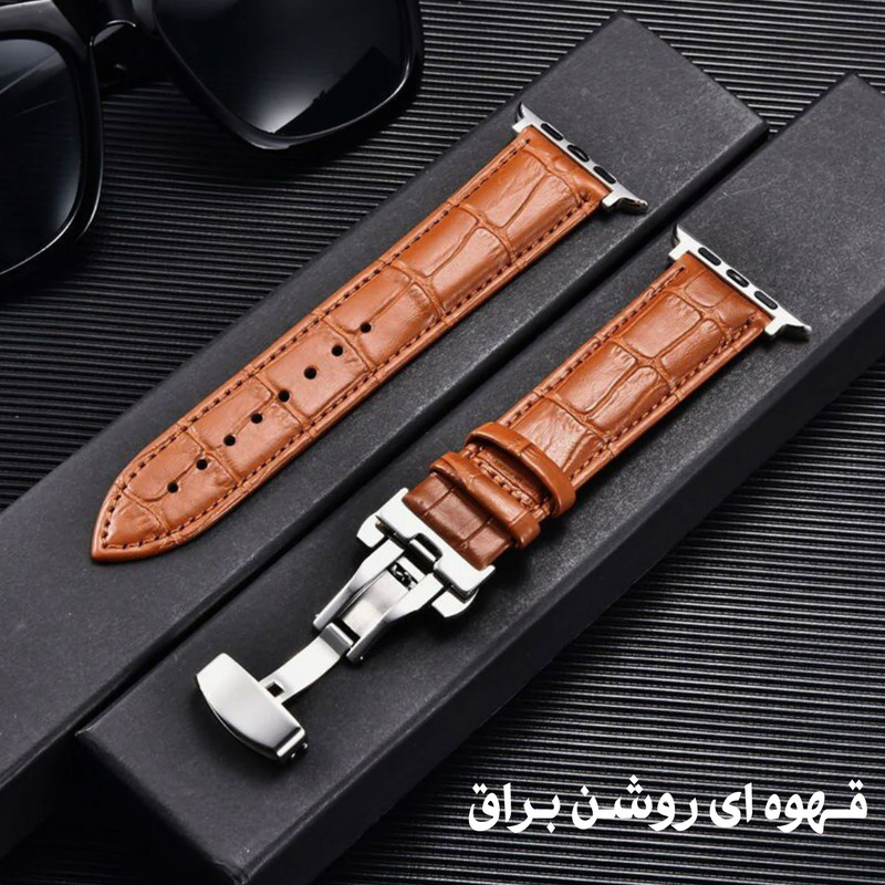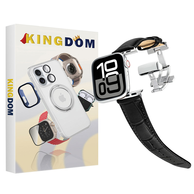 بند کینگدام مدل Crocodile Leather Butterfly مناسب برای اپل واچ سری 10 سایز 46 میلی متری