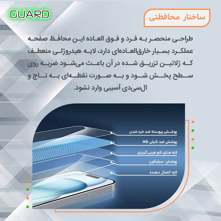 (۶) کیفیت عالی و برند معتبر: گلسهای هیدروژلی پرایوسی برند گارد با استفاده از مواد و فناوریهای روز دنیا تولید شدهاند و دوام و مقاومت بالایی دارند.