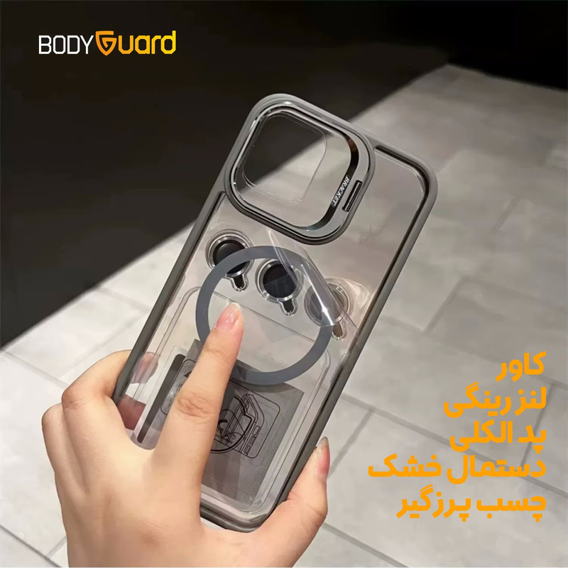دارای مگ سیف - قابلیت تبدیل شدن به استند - محافظ دوربین رینگی همرنگ کاور