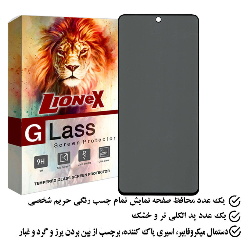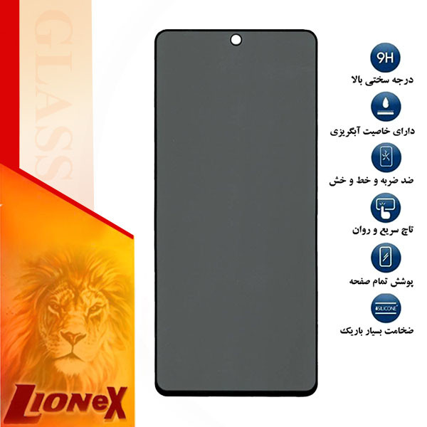 گلس حریم شخصی یا Full Privacy با برند لایونکس یک انتخاب بسیار مناسب برای افرادی است که نمی خواهند اطلاعات شخصی، مانند عکس یا متن هایشان توسط دیگران مخصوصا در مکان های شلوغ مثل مترو و اتوبوس دیده و خوانده شود. این نوع گلس فول پرایوسی به گونه ای طراحی شده که می تواند تمام صفحه گوشی موبایل شما را پوشش داده و استفاده از آن برای گوشی موبایل شما یک گزینه ایده آل به شمار می رود. ویژگی امنیتی این نوع گلس، باعث پایین آمدن کیفیت تصویر نمایشگر گوشی شما نمی شود و دید شما را نسبت به صفحه گوشی کم نمی کند. جنس آن از شیشه حرارت دیده و درجه سختی استاندارد 9H ساخته شده و نصب آسانی دارد و در صورت نصب صحیح، روی صفحه نمایش شما حباب نمی اندازد. گلس حریم شخصی یا Full Privacy، با ضخامت بسیار کمی که دارد روی کیفیت و کارایی تاچ صفحه نمایش شما تاثیر منفی نمی گذارد. یکی از ویژگی های بارز دیگر این محافظ صفحه نمایش این است که تمام قسمت های صفحه نمایش را به صورت کامل پوشش داده و به مدت طولانی روی صفحه فیکس می شود. همچنین با مقاومت بالایی که در برابر ضربه و ایجاد خط و خش دارد، می توانید با خیال راحت این گلس را تهیه نمایید.