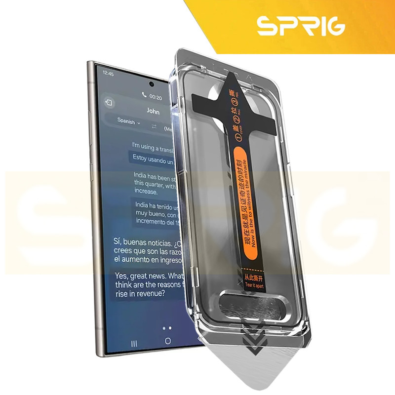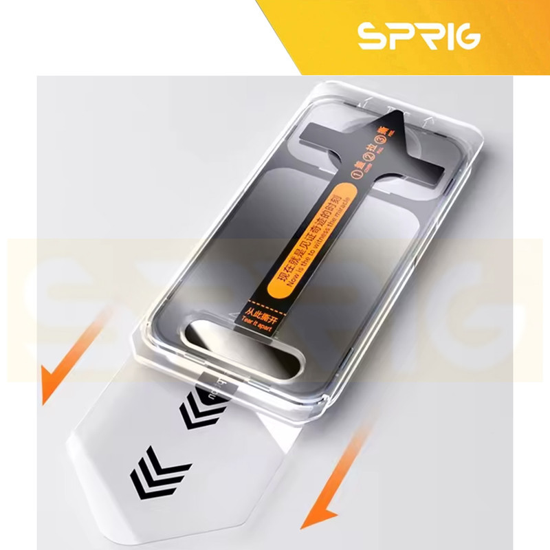 محافظ صفحه نمایش حریم شخصی شیشهای SPRIG با طراحی منحصر بهفرد و نوار هدایتگر، نصب آسان و دقیق را تنها در چند ثانیه ممکن میسازد. ابتدا صفحه گوشی را با دستمال و برچسب ضد گرد و غبار کاملاً تمیز کنید. سپس گلس را روی صفحه قرار دهید به طوری که قاب پلاستیکی دقیقاً روی گوشی بنشیند. حالا طبق راهنمای روی نوار، مرحله به مرحله فشار دهید، بکشید سپس جدا کنید تا گلس بهطور کامل و بدون حباب روی نمایشگر بنشیند. در نهایت نوار را از قسمت Tear it apart جدا کرده و از محافظتی بینقص لذت ببرید.