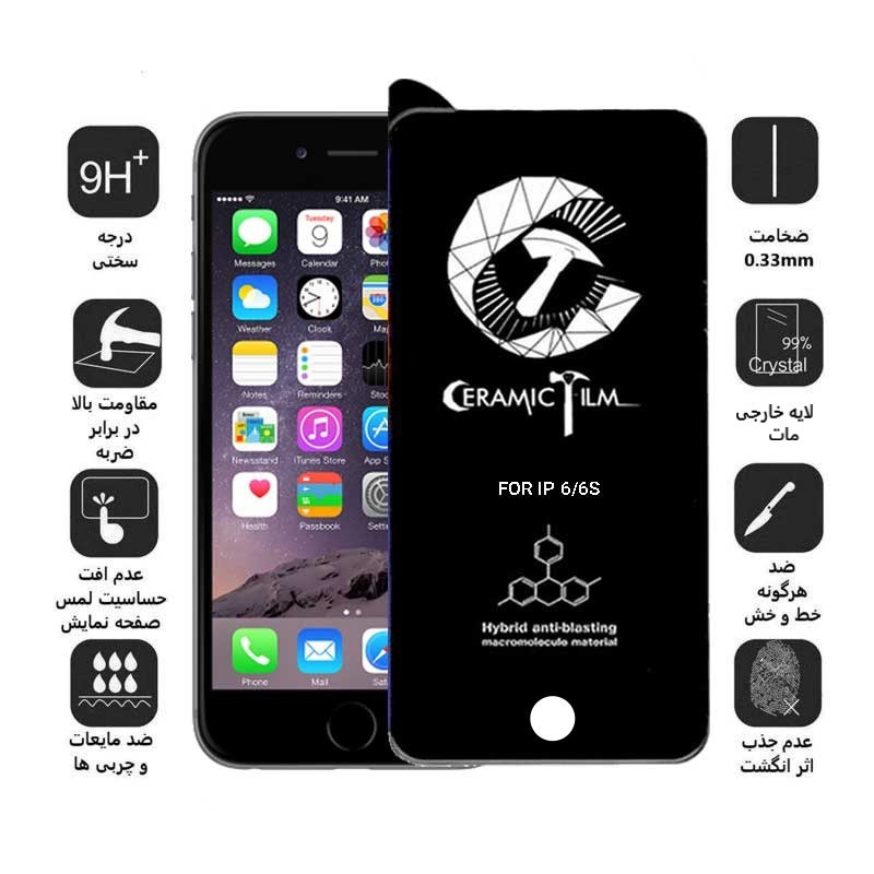 ویژگیها : 9H , جلوگیری از ایجاد خط و خش , قابلیت نصب آسان , مقاوم در برابر چربی و اثرانگشت , مقاوم در برابر خط و خش