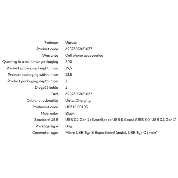 کابل تبدیل USB-C به Micro-B یوگرین مدل US312-20103 طول 1 متر