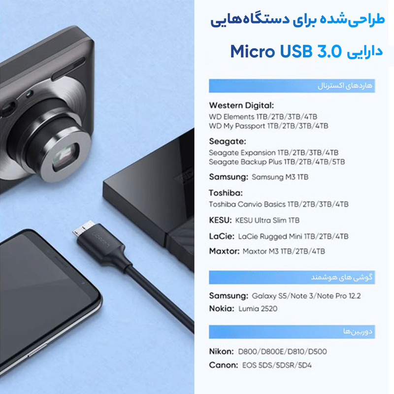 سازگار با : موبایل - هارد اکسترنال - نوت بوک - دوربین دیجیتال و ....