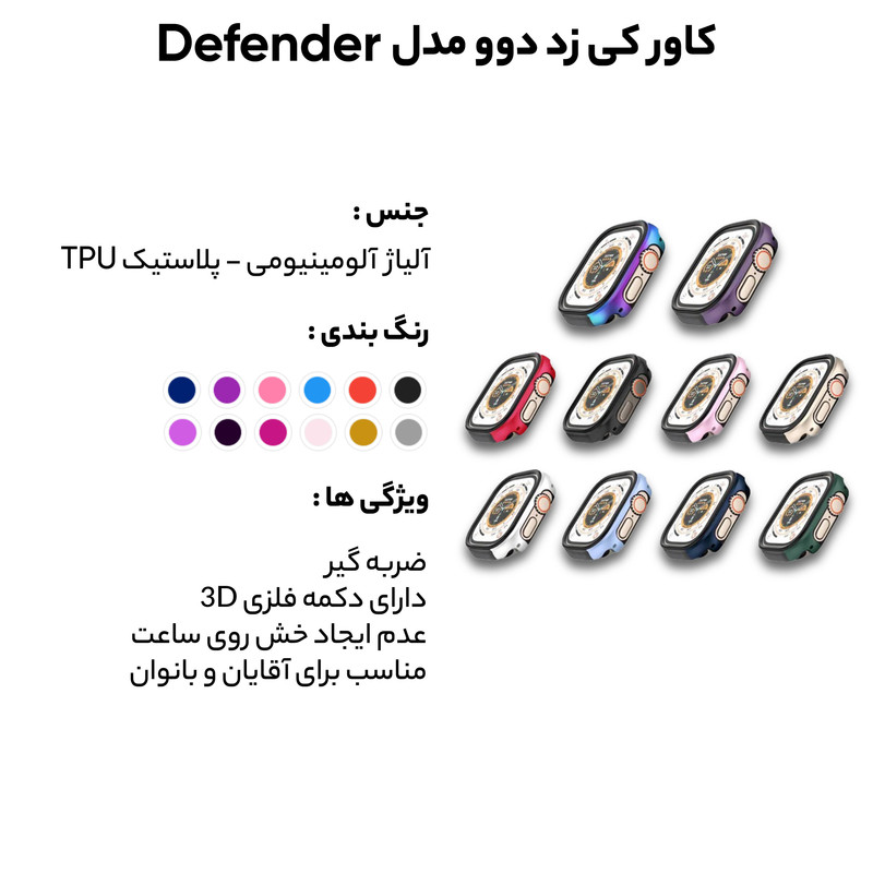 کاور کی -زد دوو مدل DEFENDER مناسب برای اپل واچ 44/45 میلی متری سری 7 / 8 / 9