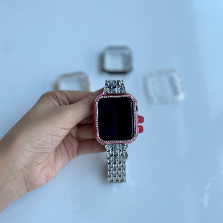 نگین دار - رنگ ثابت با بهترین کیفیت کاور به همراه محافظ صفحه نمایش ساعت / مقاوم در برابر ضربه و خط و خش