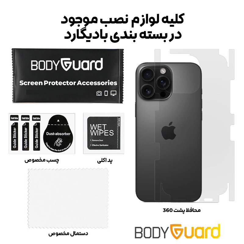 پوشش پشت گوشی - پوشش کناره های گوشی - تمام لوازم مورد نیاز نصب درون بسته بندی - ویدیو آموزش درون بسته بندی
