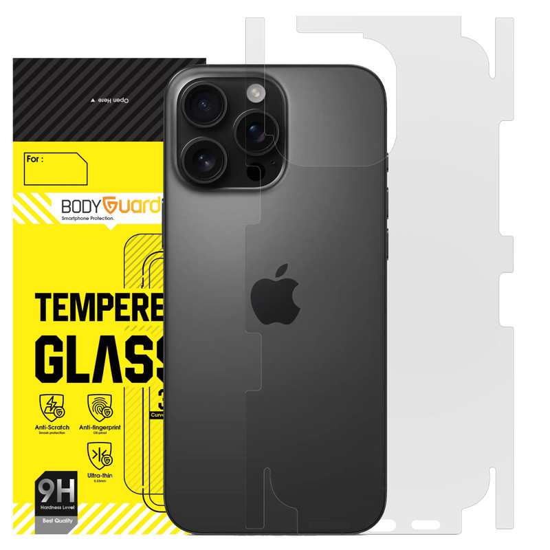 محافظ پشت گوشی iPhone 16 Pro Max علاوه بر محافظت از پشت گوشی کناره های گوشی، بالا و پایین گوشی را هم پوشش می دهد. این محافظت برای سازگاری بیشتر با پشت گوشی به صورت مات تولید شده است.