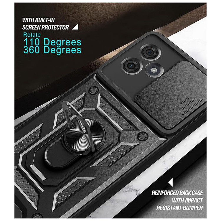 قاب گاردتک سری Dcamp2 به گونه ای طراحی شده است که همه لبه های آن، با ارتفاع قابل توجهی گوشی را در بر گرفته و مانع از آسیب دیدن گوشی Motorola G54 شود. گرچه این قاب با لبه های ژله ای هر چهار طرف گوشی را پوشانده است، اما به دلیل انعطاف پذیری لبه ها، کاربران برای نصب و جداسازی این قاب روی گوشی زحمتی نخواهند داشت و فشاری به گوشی وارد نمی شود. ژله ای بودن دور کاور باعث میشد در صورت سقوط گوشی روی زمین شوک ناشی از ضربه در همه زوایای کاور پخش شده و آسیبی به گوشی وارد نشود. یکی از مهمترین ویژگی های قاب Dcamp2 وجود حلقه نگهدارنده در پشت قاب است که شما میتوانید از حلقه ای که به این قاب متصل است در موارد گوناگون استفاده کنید.یکی دیگر از ویژگی های این کاور قسمت بالایی آن است، بخش کشویی وجود دارد که لنز دوربین گوشی را پوشانده و باعث می شود لنز دوربین دستگاه آسیب نبیند.