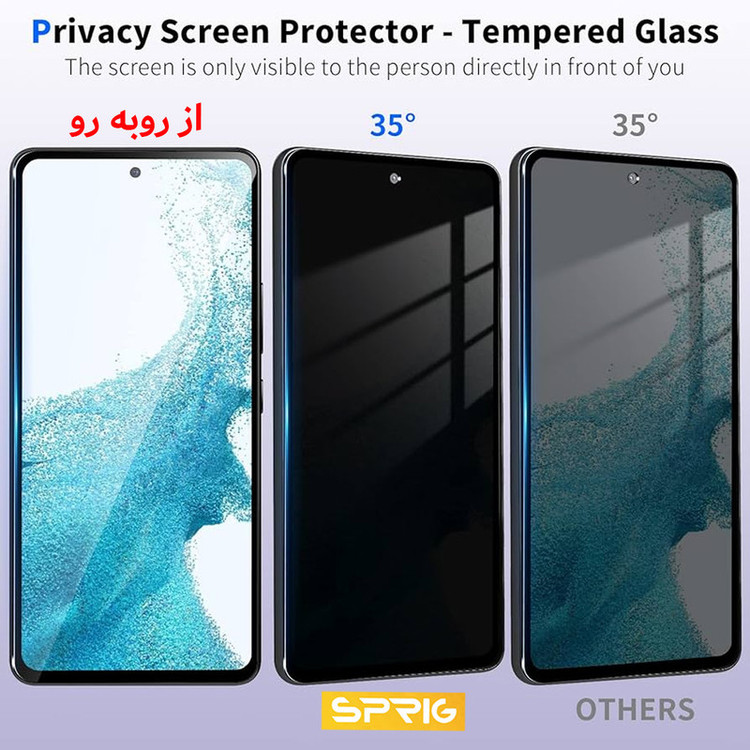 محافظ صفحه نمایش حریم شخصی اسپریگ با فناوری ضد جاسوسی، برای حفظ حریم خصوصی کاربر طراحی شده است. این گلس از زوایای کناری تصویر را تاریک کرده و تنها در زاویه مستقیم نمایش واضحی دارد. ساخته شده از شیشه حرارتدیده با درجه سختی 9H که در برابر خط و خش، ضربه و افتادن مقاوم است. دارای پوشش اولئوفوبیک که اثر انگشت، چربی و لکه را کاهش میدهد. انتقال نور بالا و حفظ کیفیت نمایشگر بدون کاهش حساسیت لمسی، نصب آسان با فناوری جذب خودکار و بدون ایجاد حباب، از دیگر مزایای این گلس اند.