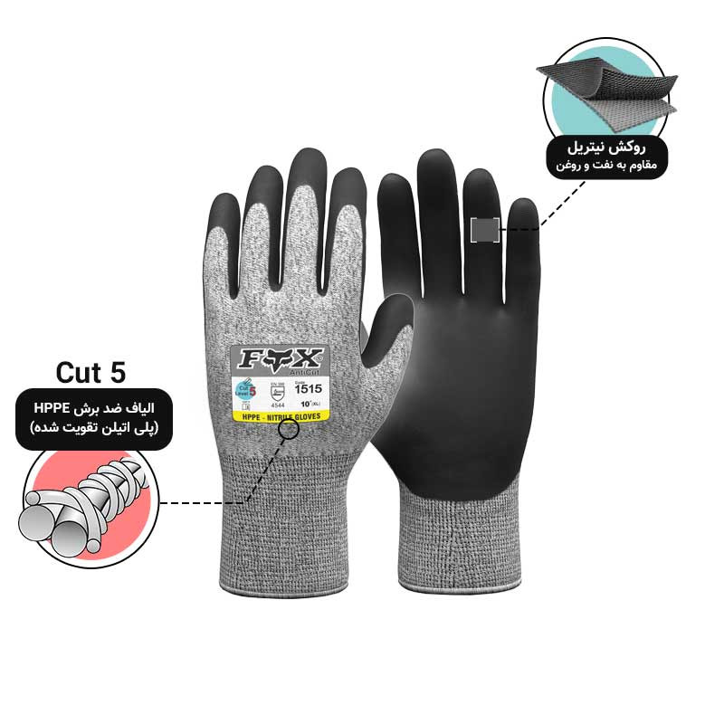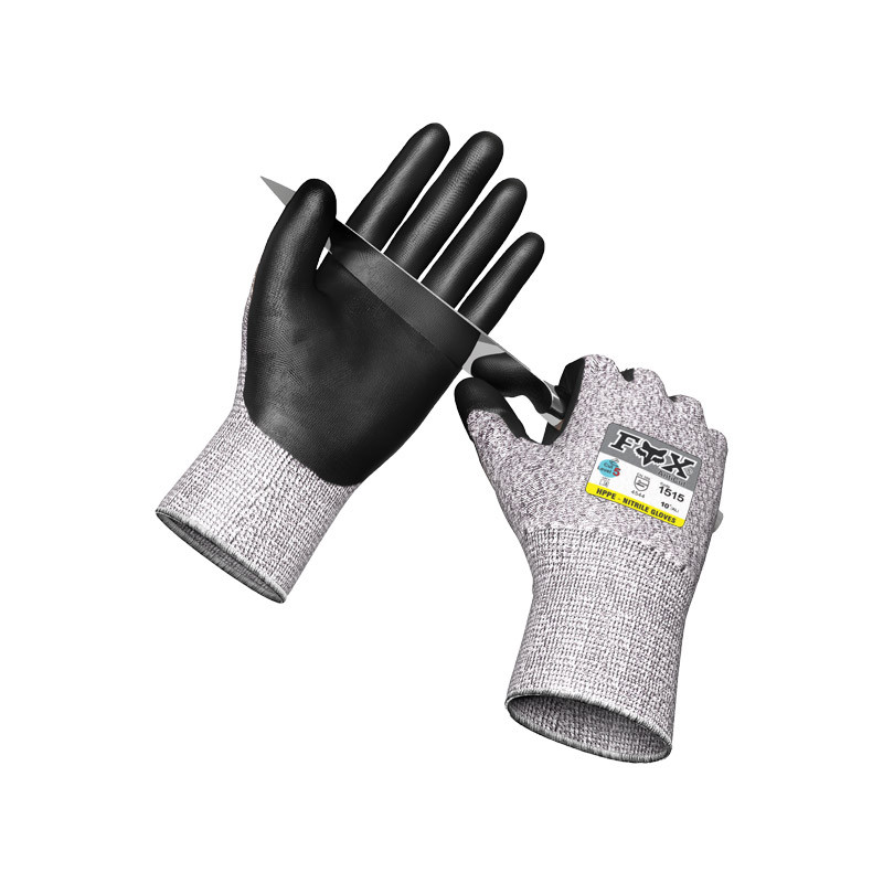 مقاوم در برابر مواد نفتی و روغنی الیاف ضدبرش HPPE روکش کف مواد نیتریل مقاوم کار با اجسام بسیار تیز و برنده سطح برش 5 استاندارد 4544D :EN388