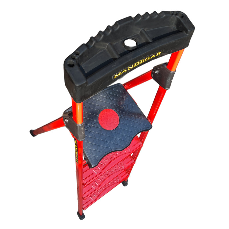 و ابعادآن را بزرگتر لحاظ کرده ایم که باعث می شود در هنگام استفاده ی طولانی مدت، پا اذیت نشود. جهت حمل راحت این نردبان، یک دستگیره برای این نردبان تعبیه شده. در پوش های ضد لغزش این نردبان موجب حفظ تعادل بهتر و آرامش بیشتر هنگام استفاده از آن می شود. رنگ استفاده شده در این مدل، الکترواستاتیک کورهای است که باعث زیبایی و دوام بیشتر میشود . بسته بندی شیرینگ شده این نردبان باعث حفظ کیفیت رنگ و جلوگیری از آسیب رسیدن به نردبان هنگام حمل و نقل خواهد شد.