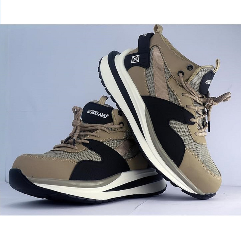 این مدل کفش متعلق به برند WORKLAND تولید شده در کشور چین می باشد . وزن این کفش با توجه به نیم ساق بودن آن نسبتا سبک بود و هر لنگه آن ( سایز 42 ) 515گرم وزن دارد . طراحی آن بسیار اسپرت و ظریف بوده و اصلا در نگاه اول کفش ایمنی بنظر نمی رسد . جنس رویه آن ترکیبی از چرم جیر و پارچه بافت مش تنفس پذیر با طراحی بسیار زیبا و چشمگیر می باشد . سرپنجه این کفش از جنس استیل است . زیره کفش از جنس PU , آنتی شوک ( SHOCK ABSORPTION جاذب ضربه ) در قسمت پاشنه پا و ضد لغزش بوده و منعطف و همچنین مقاوم در برابر روغن و مشتقات نفتی می باشد . ساق کفش بصورت نیم ساق بوده و قوزک پا را بخوبی پوشش می دهد .