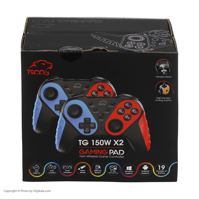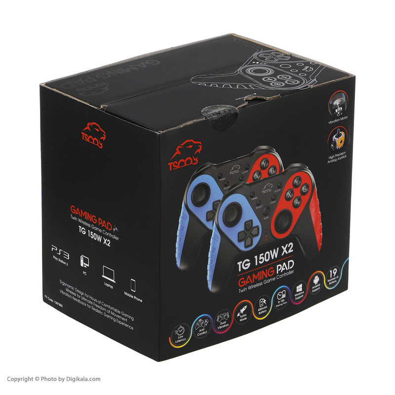 ابعاد دسته TG 150W X2 در حدود 160x110x55 میلیمتر بوده و وزن این دستهها در مجموع 470 گرم خواهد بود. تعداد کلیدهای آن 19 عدد است و طول عمر کلیدها 30000 خواهد بود. نوع اتصال این دسته بیسیم بوده و باتری دارد. باتری این دسته لیتیومی بوده و 400 میلی آمپر ساعت ظرفیت دارد. طول عمر باتری در این دستهها 8 تا 10 ساعت خواهد بود. ضمن اینکه شارژ از طریق USB Type C صورت میگیرد. جنس این دسته تسکو پلاستیکی است. این دستههای بازی تسکو با PC X- Input D- Input - PS3 - Android سازگار است. دسته بازی تسکو مدل TG 150W X2 با ویبره برای حس کردن هیجان بیشتر در بازیهای شما طراحی شده است. با این دسته بازی، دقت بالایی در بازی خود تجربه خواهید کرد که به شما در بازیهایی مانند بازیهای شوتر و اکشن بسیار کمک خواهد کرد.