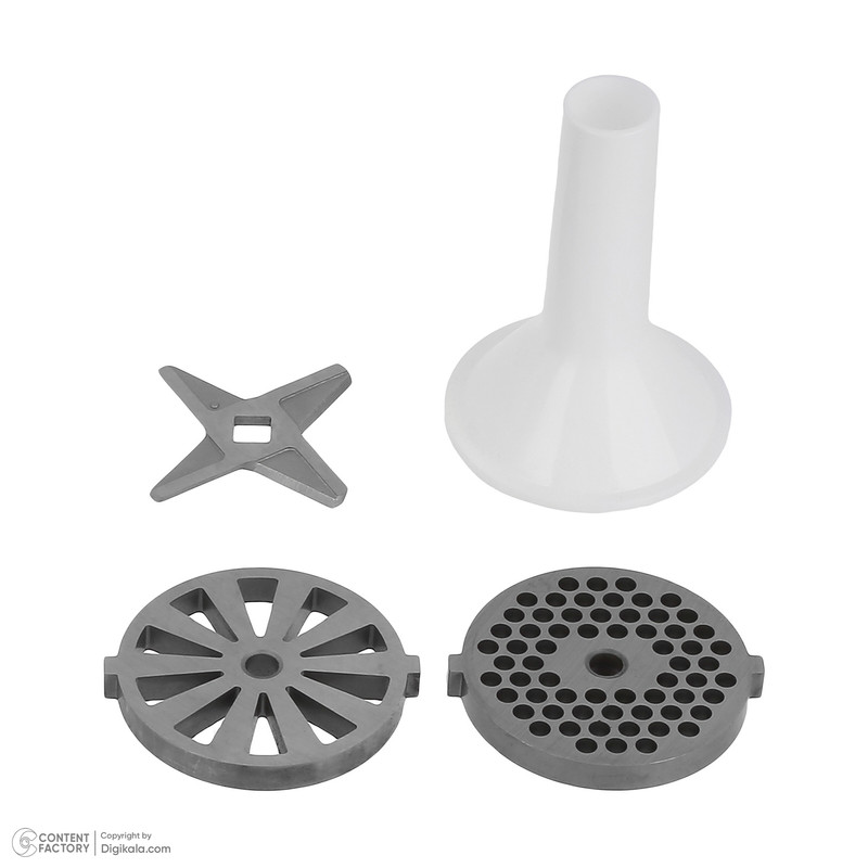 - دو عدد شبکه مخصوص خرد کردن گوشت و سبزی - ظرف پلاستیکی جهت جمع آوری گوشت چرخ شده