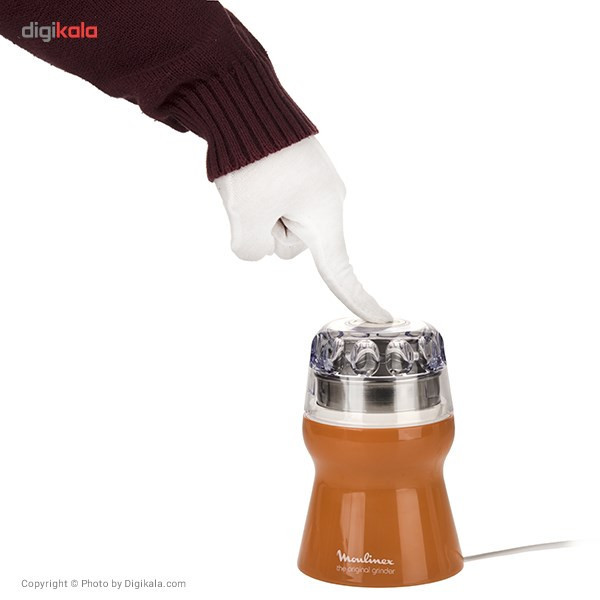 آسیاب «مولینکس» مدل «AR110O10» بدنهای پلاستیکی دارد و بسیار سبک است. استفاده از آن بسیار ساده و در حد فشاردادن درِ بالایی دستگاه است. اگر در و قسمت آسیاب را درست روی دستگاه قرار ندهید، روشن نمیشود؛ این ویژگی ایمنی دستگاه را بیشتر میکند. آسیاب نارنجی مولینکس مدل AR110O10 دستگاهی کوچک و جمعوجور و موردعلاقهی کسانی است که به نوشیدن قهوه علاقه دارند و برای طعم قهوهشان اهمیت زیادی قائلاند. این افراد ترجیح میدهند دانههای قهوه را تهیه کرده و هنگام مصرف آسیابشان کنند؛ بهاینترتیب طعم و عطر قهوه بیشتر حفظ میشود.