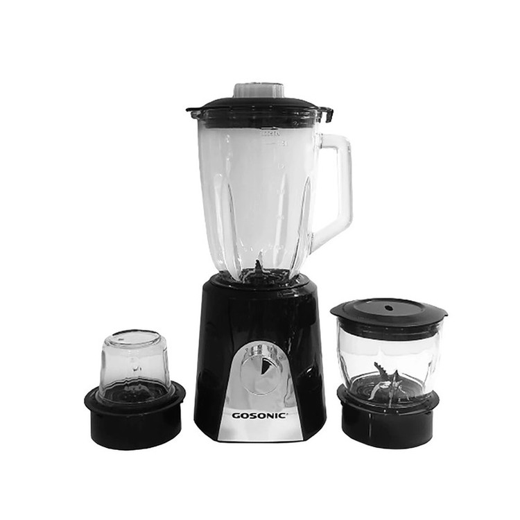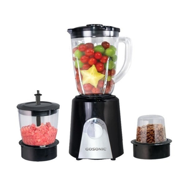 مخلوط کن سه کاره گوسونیک مدل GSB-709 با توان موتوری 500 وات یکی از جدید ترین محصولات تولید شده این شرکت می باشد. جنس بدنه این دستگاه از پلاستیک و پارچ مخلوط کن، از شیشه پیرکس بوده و دوام بالایی دارد. ظرفیت پارچ مخلوط کن آن 1.5 لیتر است. تیغه های مخلوط کن از جنس استیل ضدزنگ و چهارتایی هستند و دارای دو سرعت و عملکرد لحظه ای یا همان پالس(pulse) است. این تیغه ها قابلیت جدا سازی و شستشو دارد. پایه این دستگاه ضد لغزش بوده و نمی لغزد.
