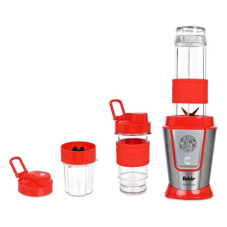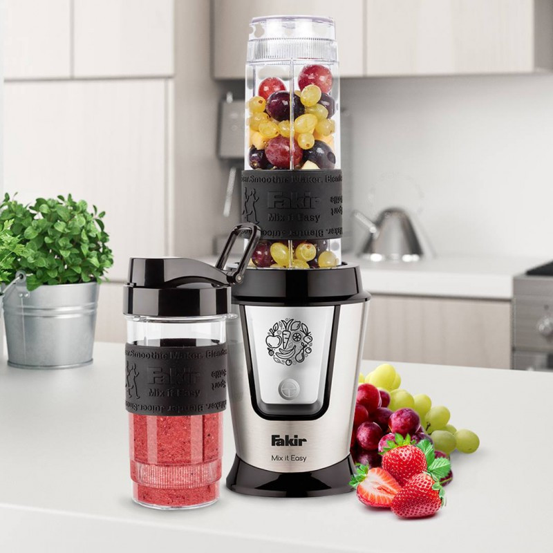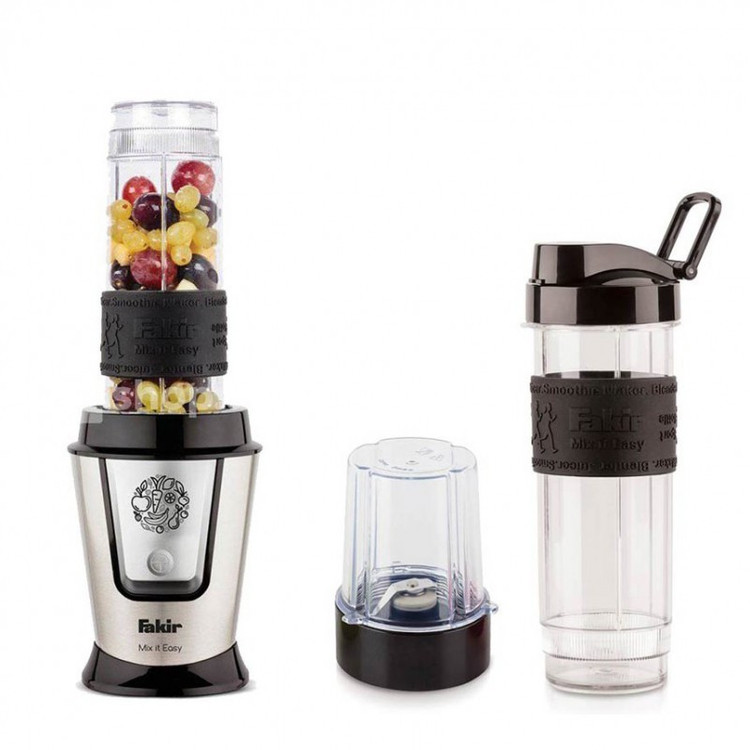 مخلوط کن فکر Mix It Easy از محصولات شرکت Fakir است که برای افرادی که به نوشیدنی علاقه دارند یا ورزشکارانی که برای باشگاه و پیادهروی با خود نوشیدنی به همراه میبرند مناسب است. این اسموتیساز فکر از توان 500 وات بهره برده است که به درپوش محافظ و پایه ضدلغزش مجهز است. بعد از درست کردن نوشیدنی میتوان در داخل دو ظرف سربسته قرار دارد و با خود به همراه برد. علاوه بر مخلوط کردن میتوان دانههای قهوه، ادویهجات و انواع مواد را آسیاب کرد. جنس بدنه از استیل و جنس پارچ از پلاستیک است که در مقایسه با وزن و ابعاد دارای عملکرد و کیفیت بالا است.خوردن یک لیوان آبمیوه خنک در روزهای گرم تابستان میتواند خستگی یک روز کاری را از تن بیرون آورد. همچنین درست کردن اسموتیهای سالم برای ورزشکاران در هنگام ورزش کردن انرژی بیشتر و حس بهتری را به آنان انتقال میدهد. فکر Mix It Easy از جمله محصولاتی است که کاملا کاربردی و دو کاره است و علاوه بر مخلوط کردن میوه و سبزیجات توانایی آسیاب کردن دانههای قهوه، انواع ادویه و آجیل را دارد. توان 500 وات در کنار تک سرعته بودن آن برای Mix It Easy به نظر ایدهآل و مناسب میآید؛ زیرا با حجم پارچ و طراحی که دارد جوابگوی نیاز شما خواهد بود. وزن مناسب آن در کنار طول کابل امکان استفاده و جابهجایی آسان را فراهم کرده است.