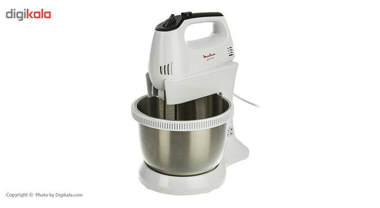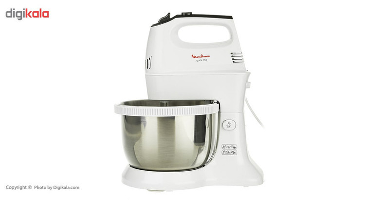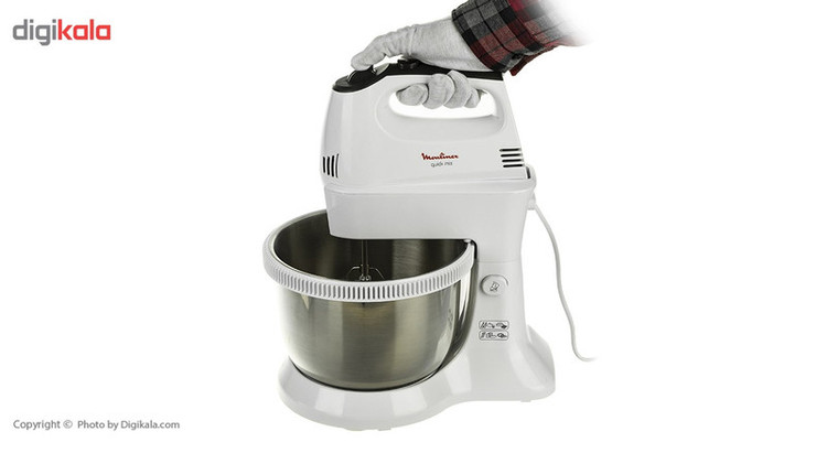 همزن «مولینکس» مدل «HM312» یکی از دستگاههای باکیفیت این شرکت و از دستهی همزنهای پایهدار موجود در بازار است. دستهی همزن میتواند روی پایه نصب شود یا به صورت مجزا و دستی استفاده شود. با استفاده از دکمهی مخصوص روی دسته میتوانید دسته را از بدنه جدا کرده و از آن با ظرف دلخواه خود استفاده کنید. یک جفت سری همزن و یک جفت خمیرزن برای این مدل در نظر گرفته شده که در کنار هم میتوانند انواع مواد غذایی نرم و سفت را هم بزنند. از مزایای دستگاه مدل HM312 میتوان به امکان تنظیم سرعت چرخش آن اشاره کرد. سرعت همزن در پنج سطح قابل تنظیم است و علاوه بر این عملکرد توربو برای این مدل در نظر گرفته شده است. حالت توربو با چرخش سریع و پرقدرت تیغهها امکان همزدن مواد سفت و سختتر را به کاربر میدهد. کاسهی همزن ظرفیت زیادی دارد و تا 3.5 لیتر مواد غذایی را در خود جا میدهد. این کاسه از جنس استیل ساخته شده و استحکام بالایی دارد. سریهای همزن هم از استیل ضدزنگ ساخته شدهاند و بهراحتی از دستگاه جداشده و شسته میشوند.