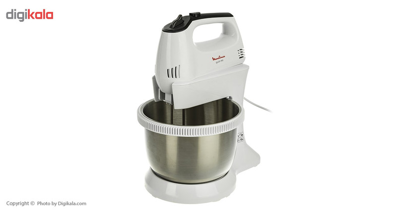 همزن «مولینکس» مدل «HM312» یکی از دستگاههای باکیفیت این شرکت و از دستهی همزنهای پایهدار موجود در بازار است. دستهی همزن میتواند روی پایه نصب شود یا به صورت مجزا و دستی استفاده شود. با استفاده از دکمهی مخصوص روی دسته میتوانید دسته را از بدنه جدا کرده و از آن با ظرف دلخواه خود استفاده کنید. یک جفت سری همزن و یک جفت خمیرزن برای این مدل در نظر گرفته شده که در کنار هم میتوانند انواع مواد غذایی نرم و سفت را هم بزنند. از مزایای دستگاه مدل HM312 میتوان به امکان تنظیم سرعت چرخش آن اشاره کرد. سرعت همزن در پنج سطح قابل تنظیم است و علاوه بر این عملکرد توربو برای این مدل در نظر گرفته شده است. حالت توربو با چرخش سریع و پرقدرت تیغهها امکان همزدن مواد سفت و سختتر را به کاربر میدهد. کاسهی همزن ظرفیت زیادی دارد و تا 3.5 لیتر مواد غذایی را در خود جا میدهد. این کاسه از جنس استیل ساخته شده و استحکام بالایی دارد. سریهای همزن هم از استیل ضدزنگ ساخته شدهاند و بهراحتی از دستگاه جداشده و شسته میشوند.