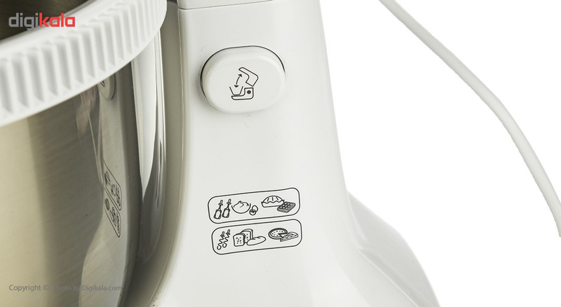 دارای دکمهی جداسازی پرههای همزن و خمیرزن دارای پایههای ضدلغزش کاسه از جنس استیل ضدزنگ
