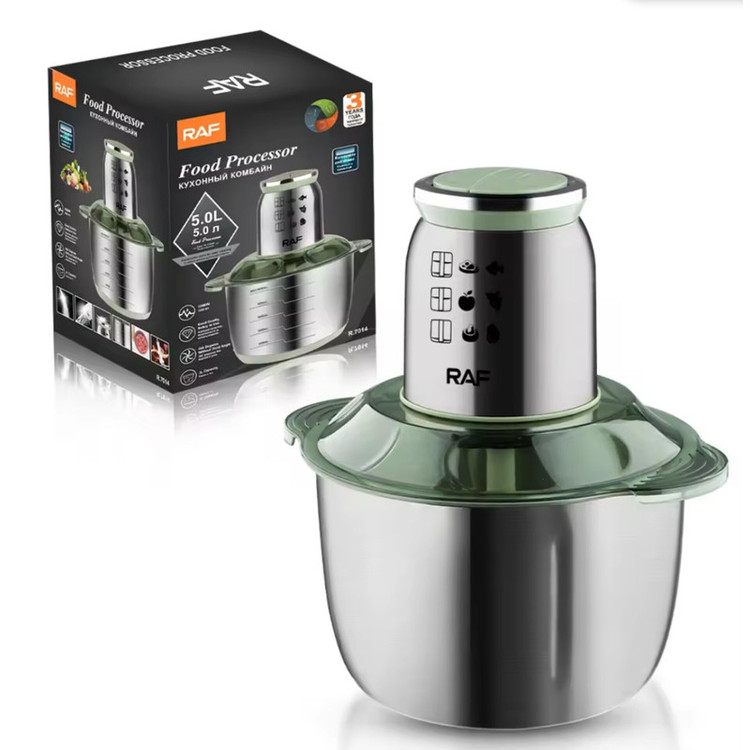 خردکن راف مدل R.7014 یکی از محصولات کاربردی و خوشساخت این شرکت می باشد که میتواند کمک بزرگی در کارهای خانه به شما بکند. این دستگاه با طراحی ظاهری بسیار زیبا، دارای یک موتور قدرتمند با توان مصرفی 1000 وات واقعی می باشد. تیغه این دستگاه از نوع 5 پره است و با توجه به طراحی 360 درجه این پره ها و نحوه کنار هم قرار گرفتن انها زاویه مرده ای در این خردکن وجود ندارد و باعث بهبود عملکرد خردکن شده است و در نتیجه آن، عمل خرد کردن با سرعت و دقت بیشتری انجام میشود. کاسه این خردکن از جنس استیل ضد زنگ است. ظرفیت این کاسه 5 لیتر است و در هر بار استفاده حجم زیادی از مواد را خرد و آماده مصرف میکند. همچنین در خردکن راف مدل 7014 از 2 تنظیمات سرعت بهره برده شده است که با توجه به نیاز و سختی مواد غذایی، می توان از آن استفاده کرد. در مجموع اگر به دنبال یک خردکن می باشید که از قدرت، کیفیت، طراحی زیبا برخوردار باشد خردکن 7014 راف می تواند گزینه ای بسیار مناسب برای شما باشد تا خیال شما را از داشتن یک دستگاه با کیفیت در آشپزخانه راحت کند.