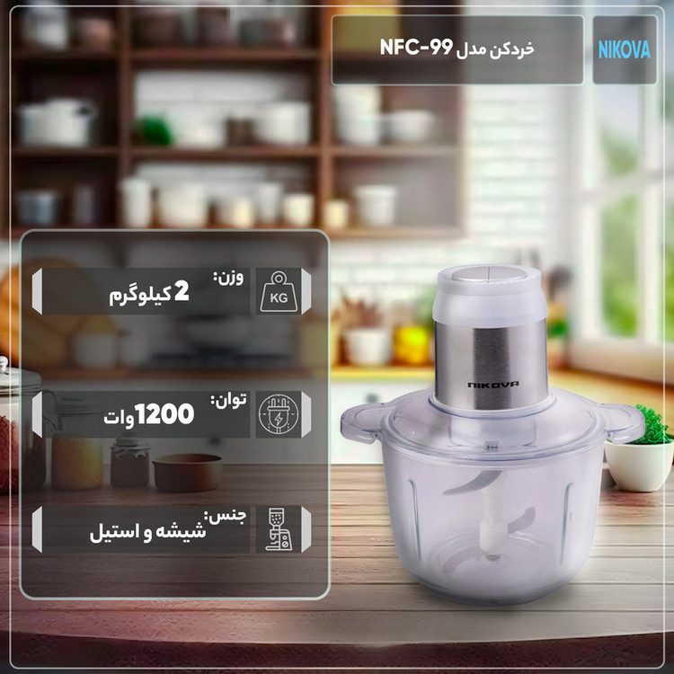 اگر به دنبال یک خردکن قدرتمند و با کیفیت هستید، خردکن نیکووا مدل NFC-99 میتواند گزینهای مناسب برای شما باشد. این خردکن با توان 1200 وات، میتواند انواع مواد غذایی را به راحتی خرد کند و بافت دلخواه شما را ایجاد کند. گنجایش ظرف خردکن این محصول 4 لیتر بوده و از جنس پیرکس است که مقاوم در برابر حرارت و شکستگی است و به راحتی قابل شستشو است. این خردکن دارای 4 عدد تیغه استیل ضدزنگ است که با دقت بالا طراحی شدهاند و عملکرد بسیار خوبی دارند. همچنین، خردکن دارای دو تنظیم سرعت است که شما میتوانید بسته به نوع ماده غذایی، سرعت مناسب را انتخاب کنید. خردکن نیکووا مدل NFC-99 در آشپزخانه شما کاربردهای مختلفی دارد و در زمان و انرژی شما صرفهجویی می کند.