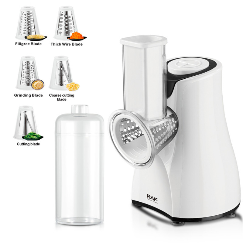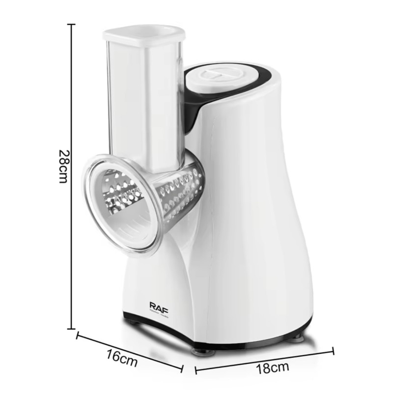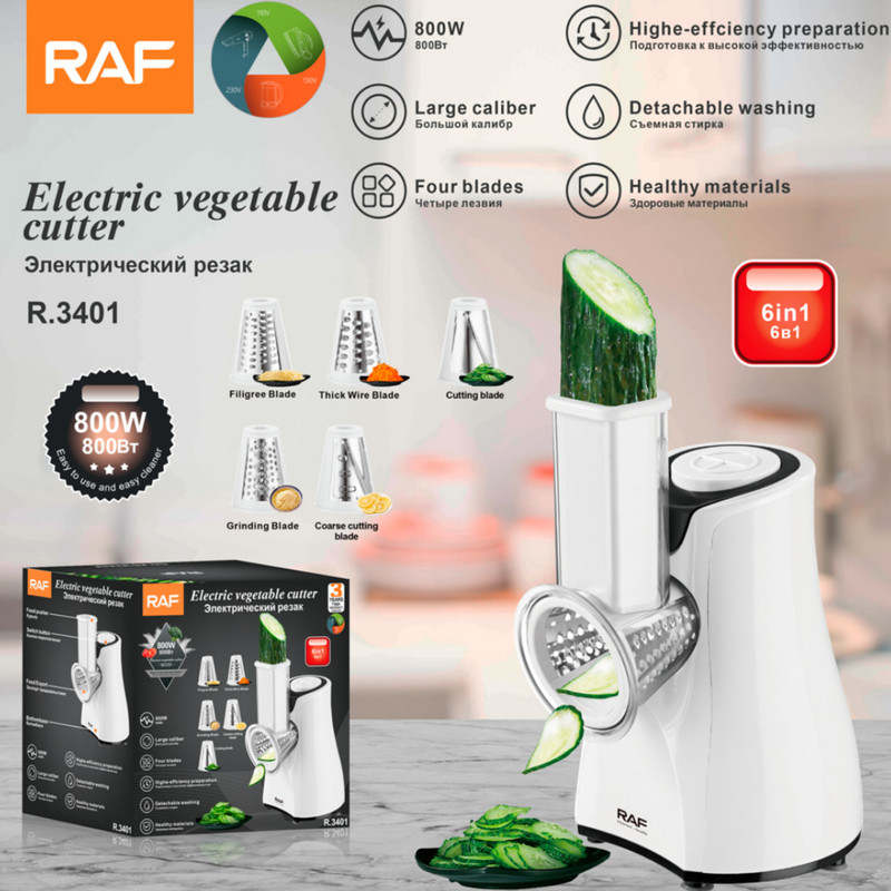 رنده برقی راف مدل R.3401 با توان ۸۰۰ وات و کالیبر بزرگ، یک ابزار حرفهای و همهکاره مخصوص آماده کردن سالاد و خرد کردن سریع سبزیجات و میوههاست. این دستگاه با طراحی ۶ در ۱ امکان رنده کردن، خرد کردن و آسیاب کردن انواع سبزیجات، میوهها و پنیر را با سرعت و دقت بالا فراهم میکند. ساخته شده از متریال سالم و با کیفیت، بدون مواد مضر و مقاوم برای استفاده روزانه است. رنده برقی راف دارای ۵ تیغه حرفهای شامل تیغه ظریف (Filigree blade)، تیغه سیم ضخیم (Thick wire blade)، تیغه آسیاب (Grinding blade)، تیغه برش درشت (Coarse cutting blade) و تیغه برش معمولی (Cutting blade) است که تمامی نیازهای خرد کردن و رنده کردن سالاد و مواد تازه را پوشش میدهند. تمام قطعات دستگاه قابل جداسازی و شستوشو هستند و تمیز کردن آن بسیار آسان است. با این رنده برقی، آماده کردن سالاد، خرد کردن سبزیجات و میوهها و حتی رنده کردن پنیر به راحتی و در کمترین زمان انجام میشود و تجربهای سریع، حرفهای و با کیفیت بالا در آشپزی برای شما فراهم میکند.