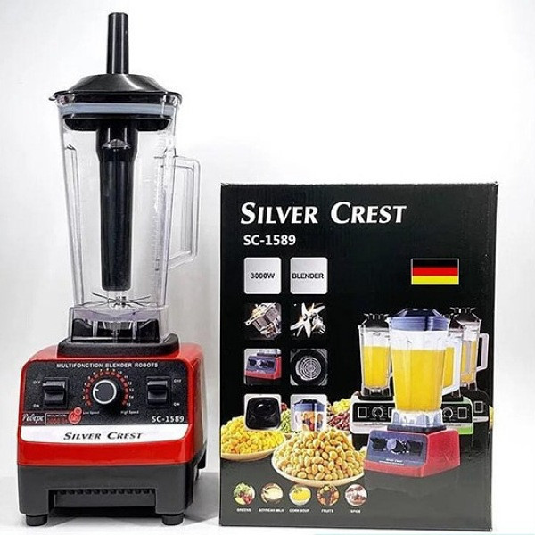 مخلوط کن سیلورکرست مدل SC-1589 از بهترین و پرقدرت ترین مخلوط کن های موجود در بازار می باشد. مخلوط کن با نام بلندر هم شناخته می شود. مخلوط کن سیلور کرست شامل یک پارچ هست که دارای 2 تیغه فولادی که شامل 6 پره می باشد. از بلندر معمولا برای تهیه نوشیدنی ها استفاده میشود و معمولا باید مقداری مایع به همراه میوه و یخ نیز در مخلوط کن ریخته شود. همچنین از مخلوط کن می توان برای میکس و له و یکنواخت کردن همه ی مواد استفاده کرد.مخلوط کن سیلور کرست جهت خرد کردن میوه، سبزیجات، آجیل، یخ، در چند ثانیه است. موتور قوی تایمر دار با عملکرد بالا مناسب برای آبمیوه فروشی، کافی شاپ، کافه ها ، سبزیجات خرد شده و تهیه اسموتی یخ زده در خانه استفاده شود. این مخلوط کن دارای تیغه های با دوام است که توانایی بالا در جهت هم زدن میوه های درشت و سفت را دارد.این مخلوط کن بهترین و جذابترین پوره یخ را ایجاد میکند. درب این مخلوط کن سیلورکرست مدل SC-1589 دارای دریچه شکرپاش است و امکان اضافه کردن شکر و یا دیگر مواد را، در حین کار با دستگاه ممکن می سازد. این دستگاه به شما این اجازه رو میده که از گزینه “پالس” استفاده کنید. به این مفهوم که مواد جامد رو در حد مورد نیاز خرد و یا پودر میکنید. با پالس زدن شما میزان خورد کردن مواد رو تحت کنترل دارید و یا اینکه مواد نیمه جامد رو در حد مورد نیاز پوره و یا له میکنید. مخلوط کن سیلور کرست SC-1589 یک دستگاه چند منظوره با قابلیت آسیاب و مخلوط کن می باشد که قابلیت آسیاب و مخلوط کردن انواع مواد غذایی قابل خرد شدن اعم از سبزیجات، میوه، ادویه و… را دارد. این دستگاه به یک موتور قدرتمند با توان بالا مجهز است که قابلیت چرخش با سرعت 32000 دور در دقیقه را دارد که به آسانی و در کمترین زمان مواد مورد نطر را مخلوط کرده و آن را برای شما آماده می کند. مدل 1589 قابلیت تنظیم سرعت را دارد و با استفاده از دکمه گرداننده ای که بر روی دستگاه تعبیه شده بسته به نوع مواد غذایی می توانید سرعت آن را تنظیم کنید و همچنین می توانید سرعت موتور را بر روی دور آهسته و یا دورسرعت بالا قرار دهید. مخلوط کن سیلور کرست 1589 دارای تیغه هایی از جنس استیل ضد زنگ است که بسیار محکم و با دوام طراحی شده و حتی قابلیت خرد کردن یخ را نیز دارد. جنس کاسه مخلوط کن از شیشه پلی کربنات ساخته شده
