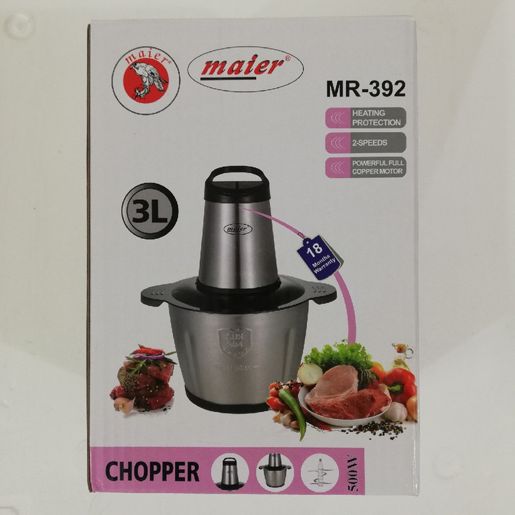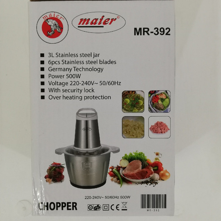 حجم سه لیتر توان 500 وات 6 تیغه ای حنس بدنه استیل ضد زنگ جنس ظرف استیل ضد زنگ دارای سیستم قطع خودکار و ضد گرم شدن قابلیت تنطیم سرعت طراحی بسیار زیبا و مدرن دارای کابل بلند و فیش سه شاخه اروپایی تحت لیسانس شرکت مایر آلمان