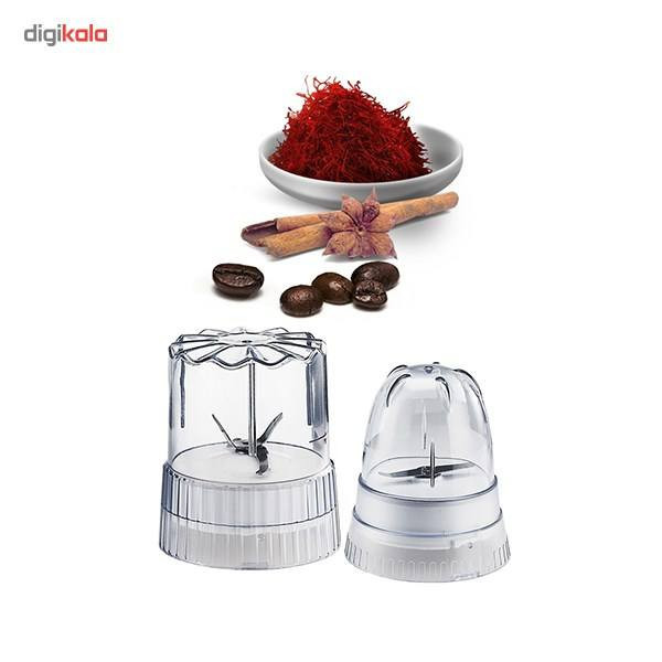 - دارای خردکن مخصوص برای خرد کردن گوشت , سیب زمینی و پنیر سفت - دارای آسیاب مخصوص برای قهوه , گیاهان و انواع ادویه - دارای پایه های ضد لغزش - دارای سیستم محافظ اتوماتیک در برابر گرمشدن بیش از حد موتور - دارای سویچ ایمنی