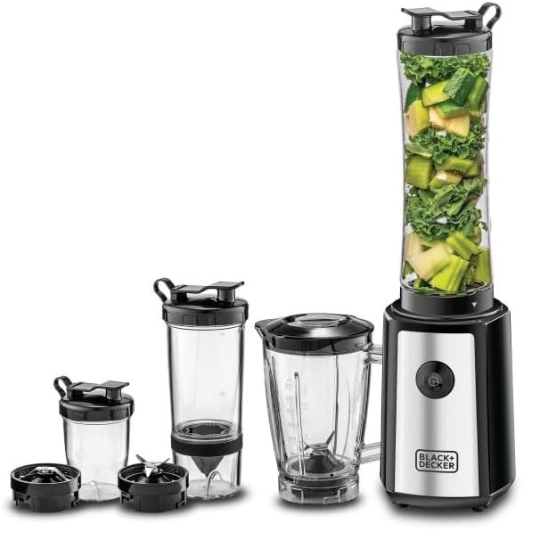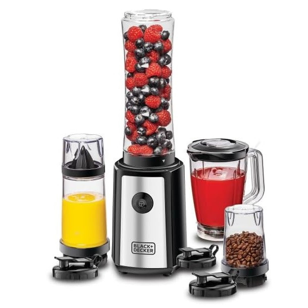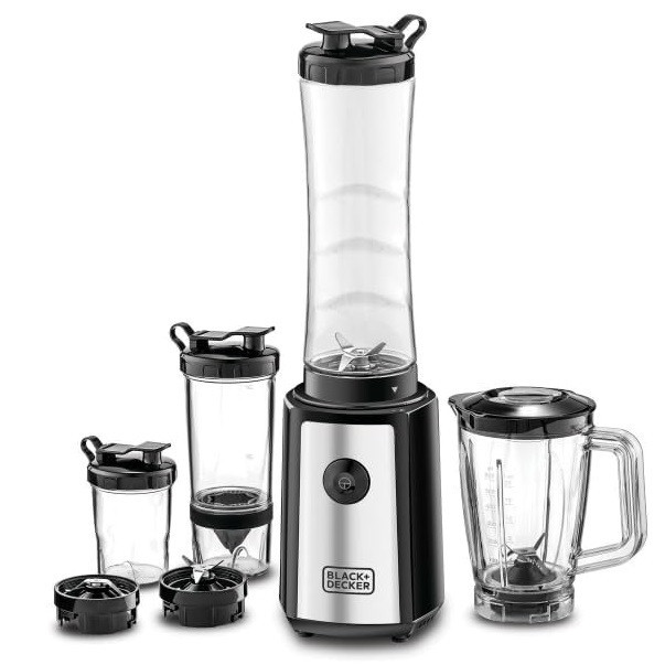 برند بلک اندکر برندی معروف،بامعتبر و شناخته شده در سطح جهانی با قدمت حدود یک قرن می باشد که محصولاتی با کیفیت بالا و مطابق با استانداردهای جهانی درسراسر جهان تولید و عرضه می نماید.شیکر و مخلوط کن برقی مدل SBX300BCG از سری محصولات جدید این شرکت می باشد که دارای 4 عملکرد آبمیوه گیری،مخلوط کن،آسیاب،آب مرکبات گیری دستی می باشد که دارای موتور قدرتمند 300 وات و عملکرد توربو(21/500 دور در دقیقه(21500RPM)) می باشد که این دستگاه را برای تمامی موادغذایی مناسب می سازد.این دستگاه دارای ظرف آبمیوه 550 میلی لیتری همراه با اتصال آب مرکبات گیری دستی بروی آن همراه با درپوش 30میلی لیتری جهت تهیه انواع آب مرکبات و اضافه کردن به آبمیوه های آماده شده ، می باشد.وپس از تهیه آبمیوه درب دستگیره دار دستگاه را بروی قمقمه بسته وبرای همراه بردن مناسب می باشد.همچنین این دستگاه دارای ظرف آسیاب 300 میلی لیتری همراه با تیغه های استیل ضد زنگ جهت تهیه آسیاب قهوه،ادویه ها؛آجیل و مغزیجات می باشد که پس از عملیات تیغه دستگاه را بازنموده و درپوش دستگیره دار همراه را جایگزین کرده .این دستگاه دارای ظرف مخلوط کن بزرگ 600 میلی لیتری با تیغه های ضد زنگ استیل دندانه دار جهت تولید انواع آبمیوه،اسموتی،سوپ ها که باتوجه به تیغه های تیز و دندانه دار مناسب پودرکردن انواع میوه های یخ زده و یخ می باشد.