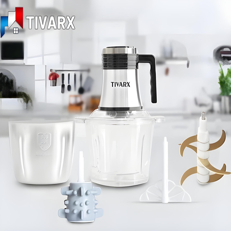 خردکن حرفهای Tivarax TX6187 با طراحی پیشرفته و عملکردی قابلاعتماد، انتخابی هوشمندانه برای آشپزخانههای مدرن است. این دستگاه با بهرهگیری از موتور قدرتمند ۵۰۰ وات و ۶ تیغهی فولادی ضدزنگ، امکان خرد کردن انواع مواد غذایی از جمله سبزیجات، گوشت، مغزها و مواد سخت را با نهایت سرعت و دقت فراهم میسازد.