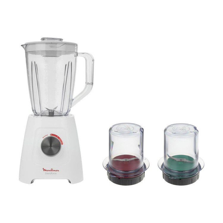 مخلوطکن مولینکس مدل LM423125 از سه قسمت تشکیل شده است. یک پارچ مخلوط کن برای تهیه انواع آبمیوه، میلکشیک و … دو عدد آسیاب خردکن که برای آسیاب کردن استفاده میشود. ابعاد مخلوکن 375x170x170 بوده و وزن آن 1.76 کیلوگرم میباشد. ابعاد مخلوطکن بسیار استاندارد میباشد و در کابینت شما فضای زیادی اشغال نمیکند. توان مصرفی موتور مخلوطکن 600 وات بوده و با برق شهری کار میکند.