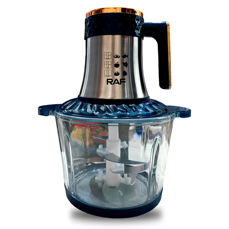 خردکن راف مدل R.7043 یکی از محصولات کاربردی و خوشساخت این شرکت می باشد که میتواند کمک بزرگی در کارهای خانه به شما بکند. این دستگاه با طراحی ظاهری بسیار زیبا، دارای یک موتور قدرتمند با توان مصرفی 800 وات می باشد. تیغه این دستگاه از نوع 6 پره است و با توجه به طراحی و نحوه کنار هم قرار گرفتن پرهها زاویه مرده ای در این خردکن وجود ندارد و باعث بهبود عملکرد خردکن شده است و در نتیجه آن، عمل خرد کردن با سرعت و دقت بیشتری انجام میشود. کاسه این خردکن از جنس پیرکس است که مقاومت خوبی در برابر ضربه دارد و به آسانی نمیشکند. ظرفیت این کاسه 3 لیتر است و در هر بار استفاده حجم زیادی از مواد را خرد و آماده مصرف میکند. همچنین خردکن راف مدل 7043 از 4 تنظیمات سرعت بهره برده شده است که با توجه به نیاز و سختی مواد غذایی، می توان از آن استفاده کرد.