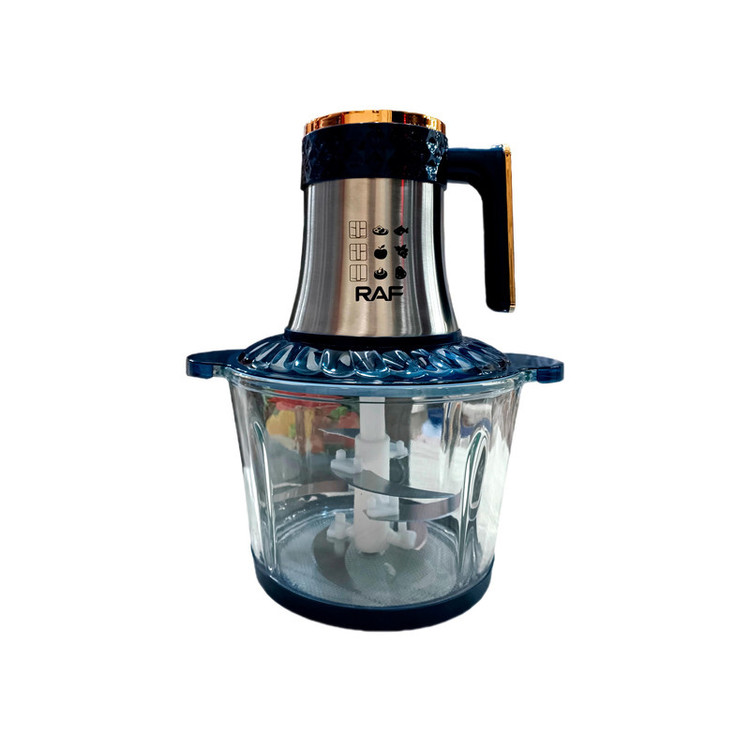 خردکن راف مدل R.7043 یکی از محصولات کاربردی و خوشساخت این شرکت می باشد که میتواند کمک بزرگی در کارهای خانه به شما بکند. این دستگاه با طراحی ظاهری بسیار زیبا، دارای یک موتور قدرتمند با توان مصرفی 800 وات می باشد. تیغه این دستگاه از نوع 6 پره است و با توجه به طراحی و نحوه کنار هم قرار گرفتن پرهها زاویه مرده ای در این خردکن وجود ندارد و باعث بهبود عملکرد خردکن شده است و در نتیجه آن، عمل خرد کردن با سرعت و دقت بیشتری انجام میشود. کاسه این خردکن از جنس پیرکس است که مقاومت خوبی در برابر ضربه دارد و به آسانی نمیشکند. ظرفیت این کاسه 3 لیتر است و در هر بار استفاده حجم زیادی از مواد را خرد و آماده مصرف میکند. همچنین خردکن راف مدل 7043 از 4 تنظیمات سرعت بهره برده شده است که با توجه به نیاز و سختی مواد غذایی، می توان از آن استفاده کرد.