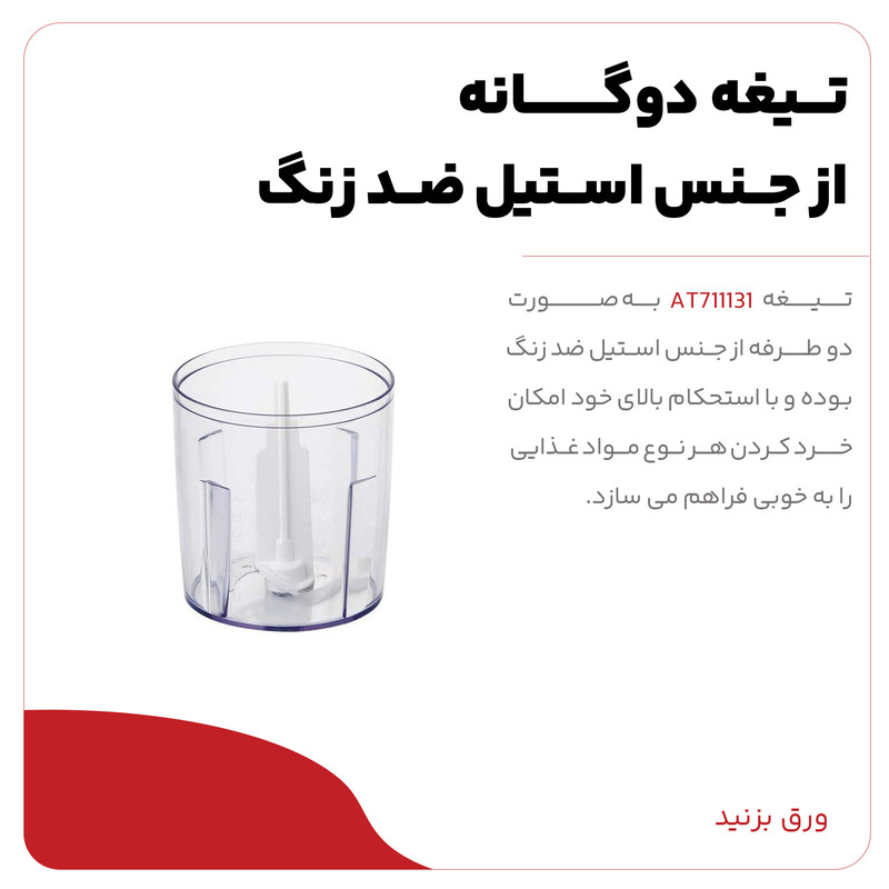 ساخت فرانسه خردکن 3 در 1 ( Mince , Chop , Mix ) دارای یک عدد تیغه 2 لبه 2 پره