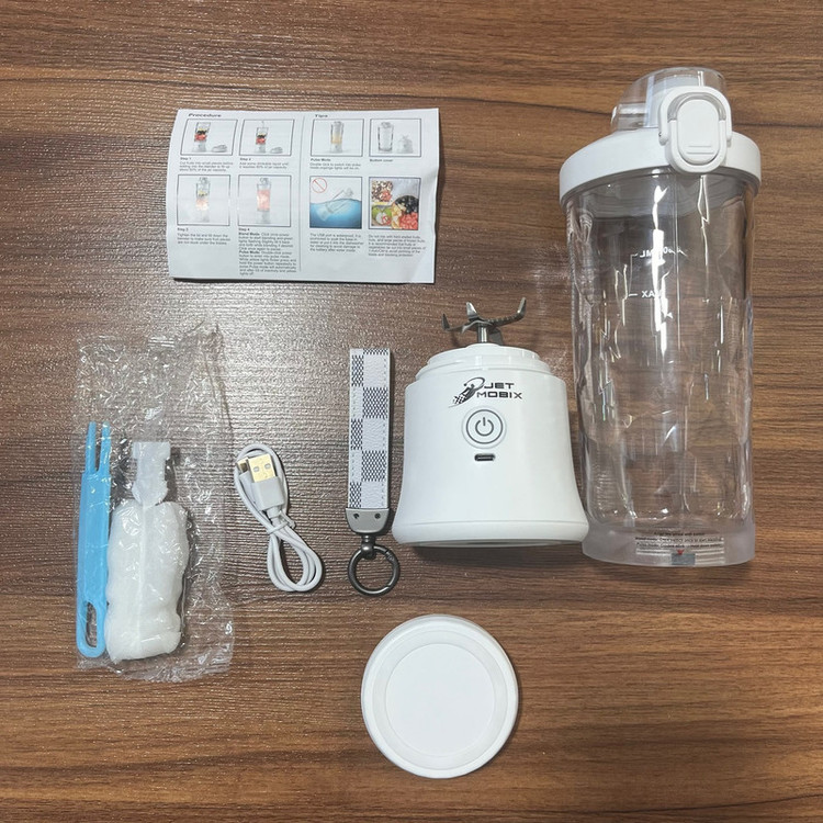 شیکر و مخلوط کن شارژی جت موبیکس مدل A9 به روز ترین محصول کمپانی جت موبیکس است که با تکنولوژی پیشرفته و طراحی بدنه کریستالی خود ، یک مخلوط کن حرفه ای پر قدرت قابل حمل و ضد آب را در اختیار شما قرار میدهد تا بتوانید در زمان ، نوشینی دلخواه خود را درست کرد و از آن لذت ببرید . تیغه های به کار رفته در این مخلوط کن با کیفیت ، از جنس استیل 304 با طراحی 6 پره سه جهته با قابلیت یخ شکن می باشد که به راحتی تمام ، فراتر از انتظار یک مخلوط کن شارژی هر آنچه که داخل این مخصول کن قرار دهید را خرد میکند از قالب یخ و میوه یخ زده گرفته تا دانه های سخت مثل جوز هندی و زنجبیل و سایر خوراکی های سخت پوست ، این مخلوط کن به شما هرگز در خرد کردن ، نه نمیگوید. در ساخت این محصول از موتور دریل شارژی استفاده شده که سرعت چرخش آن تا 18000 دور بر دقیقه بالا می رود و میتواند یک نوشیدنی یک دست و با بافتی نرم را در اختیار شما قرار دهد. در بسته بندی این شیکر حرفه ای ، پک نظافت و شستشو محصول و دستگیره چرمی نگهدارنده و کابل شارژ و درب تبدیل به ماگ و دفترچه راهنما نیز قرار دارد. این مخلوط کن حرفه ای توانایی ذخیره سازی 4000 میلی آمپر انرژی را دارد که با هر بار شارژ قابلیت استفاده بیش از 25 مرتبطه را به شما میدهد فقط دقت کنید که برای افزایش عمر دستگاه به هیچ عنوان نباید با شارژر فست شارژ محصول را شارژ کنید و میتوانید با آداپتور های معمولی موبایل (غیر فست شارژ) به راحتی محصول را شارژ کرده و سال ها از آن استفاده کنید .این شیکر شارژی حرفه ای 2 حالت روشن کردن دارد (1-دکمه را یکبار فشار دهید که این مود اصلی است و مخلوط کن به مدت 30 ثانیه روشن میشود 2-دوبار فشردن دکمه اصلی که این مود حالت پالس را فعال میکند و بعد از آن فقط همان زمانی که دکمه را فشار میدهد روشن میشود) این محصول برای شیک کردن انواع مکمل ورزشی و ساخت انواع اسموتی و نوشیدنی و شیک مناسب میباشد و همچنین در موقعیت های سفر و کمپینگ و حتی آشپز خانه میتوانید برای آماده سازی غذا از آن استفاده نمایید (مثل خرد کردن گوجه یا خرد کردن پیاز برای پختن کباب) . این محصول یک درب تبدیل به ماگ نیز دارد که میتوانید پس از آماده سازی نوشیدنی ظرف اصلی شیکر را به یک ماگ ورزشی کریستالی تبدیل کنید.