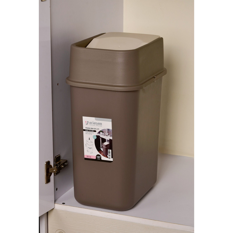 مناسب ترین و زیباترین گزینه برای محیط آشپزخانه و فضاهای بیرون این مدل سطل زباله بادبزنی برند آریاسام می باشد. ظرفیت این مدل 20 لیتری بوده و ارتفاع سطل 43 سانتیمتر است. معمولا در فضاهای بیرونی از سطل های 20 لیتری استفاده می شود.