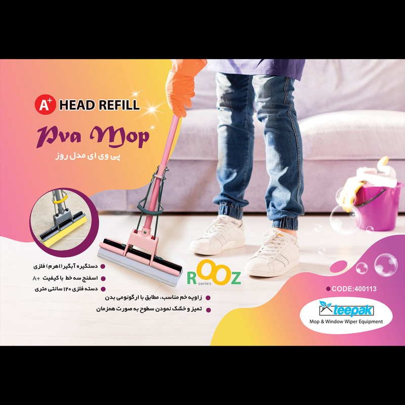 چند سالی است که زمین شوهای اسفنجی پی وی ای جای خود را در بین وسائل نظافتی مدرن باز کرده است و در بسیار از موارد جایگزین زمین شوی های سنتی شده است. شرکت تی پاک به عنوان یکی از پیشگامان تولید ابزار های نظافتی در بین محصولات خود دو مدل از این نوع زمین شوی ها را تولید می نماید . استفاده از اسفنج های پی وی ای در بخش تمیز کننده به جای بخش نخی و حوله ای باعث شده است علاوه امکان آبگیری آسان و سریع، نظافت کاملی برای انواع سطوح مانند انواع پارکت و سرامیک ولمینت و... به وسیله زمین شوی های پی وی ای تی پاک حاصل شود. از نکات قابل توجه در هنگام استفاده از زمین شوی های پی وی ای تی پاک آن است که حتما قبل از استفاده می بایست بخش اسفنجی برای نرم شدن داخل آب قرار گیرد و از کشیدن دستگیره در هنگام خشک بودن اسفنج خودداری نمائید . شیارهای طراحی شده بر روی سطح اسفنج باعث جذب انواع گرد و غبار و کثیفی از سطوح می شود.استفاده از ید کهای اسفنجی با کیفیت بالا و سه خط با کیفیت A+ در محصولات تی پاک علاوه بر نظافتی کامل باعث طول عمر بیشتر زمین شوی های پی وی ای تی پاک نسبت به سایر نمونه های مشابه در بازار شده است . این زمین شوی با دسته کشوئی (تلسکوپی) و تحت عنوان مدل هوم پلاس و مدل MAX (همراه با یدک پارچه ای چنیلی و ماکارانی) نیز توسط تی پاک در دیجی کالا ارائه می شود.