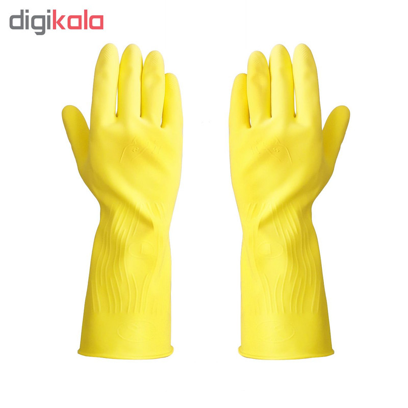 طول دستکش از مچ دست: 12 سانتی متر ساخته شده از لاتکس جهت شستشوی ظروف و انجام امور صنعتی جلوگیری از انتقال آلودگی محیطی طراحی شده طبق حرکت انگشتان دست