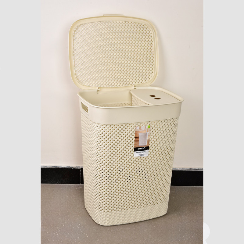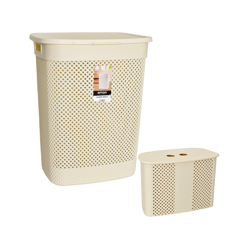 سبد رخت دربدار بلند طرح بافت لیمون ساخته شده از پلاستیک و دارای طرح زیبای بامبو حصیری است. این سبد وسیله ای مناسب و کاربردی برای جمع آوری لباس های کثیف می باشد. این سبد رخت دربدار طرح بامبو در رنگ های زیبا و متنوع مناسب هر سلیقه ای موجود است. داخل این سبد رخت ، سبدی کوچک برای لباس های کوچک تر تعبیه شده است.