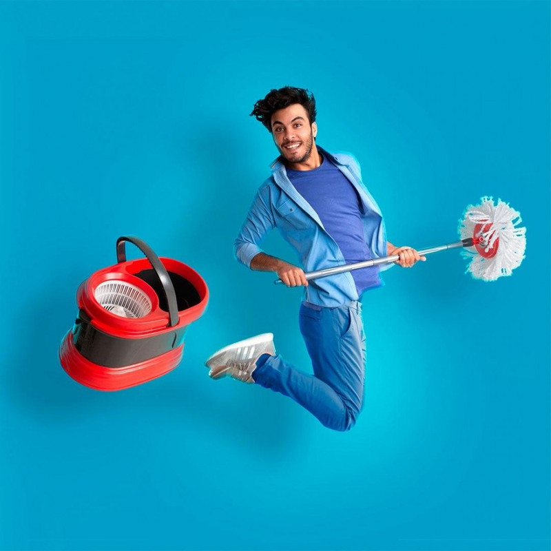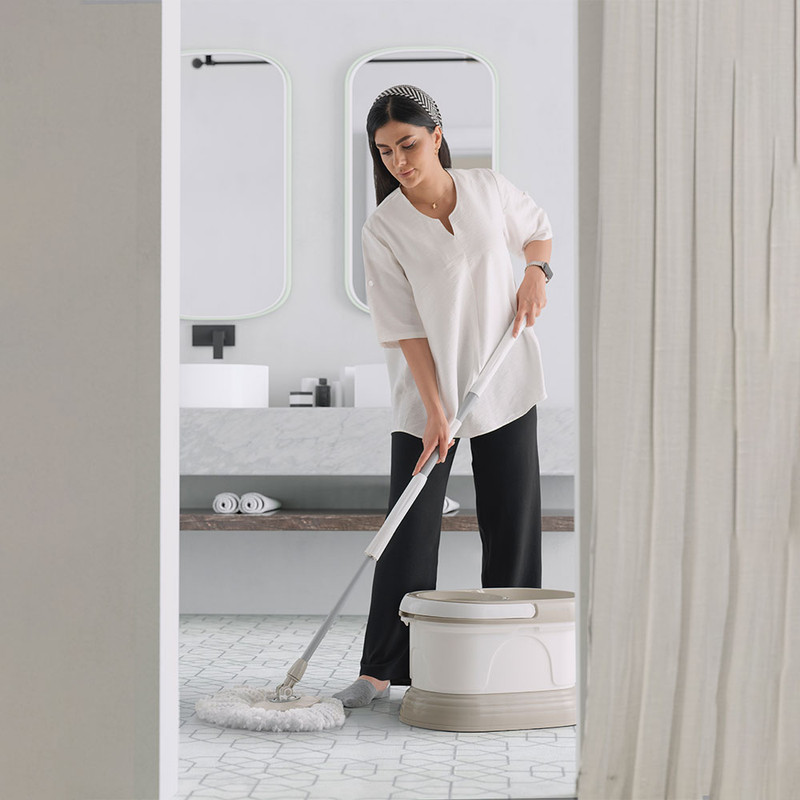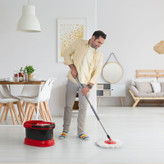 با قرار دادن دسته زمین شوی در سبد آبگیری و بالا و پایین بردن آن، میتوانید مکانیزم چرخشی را به حرکت درآورده تا آبگیری انجام شود. حالا میتوانید با تنظیم ارتفاع دسته به راحتی نظافت خود را آغاز کنید.