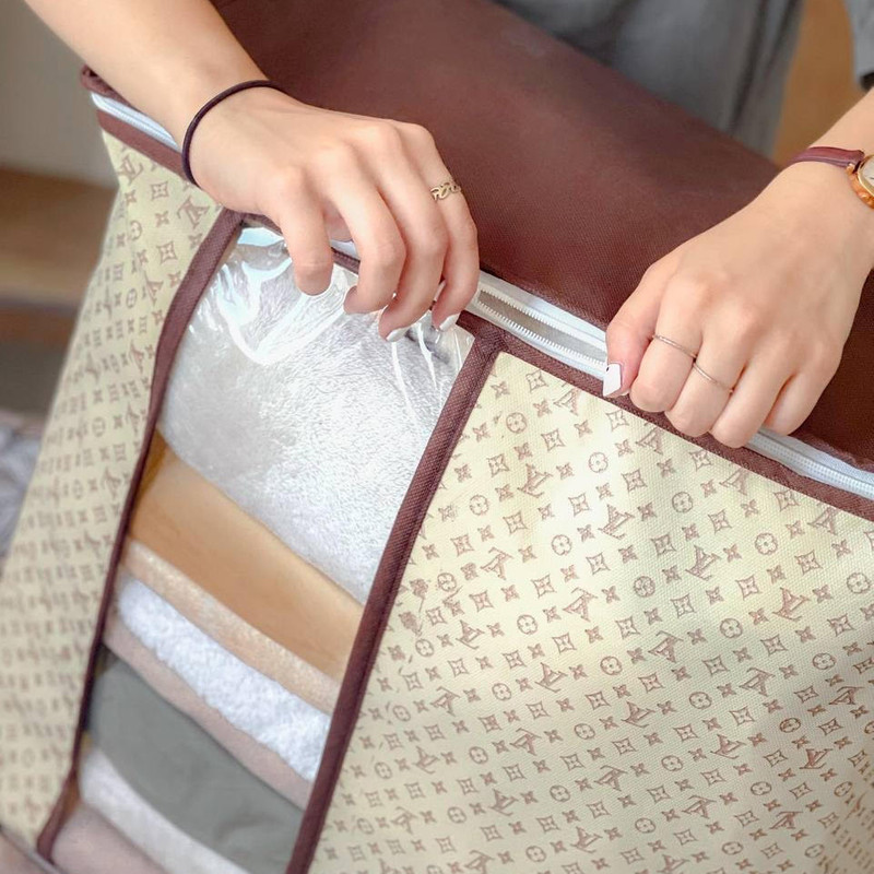 باکس لباس لیلیوم از جنس پارچه پلی استر ضخیم و طلق شفاف ساخته شده و طول آن 48 عرض 30 و ارتفاع 52 سانتیمتر است که میتوانید انواع لباس و پتو را در آن جای دهید. این محصول قابلیت شستشو با دست و ماشین لباسشویی را دارد.
