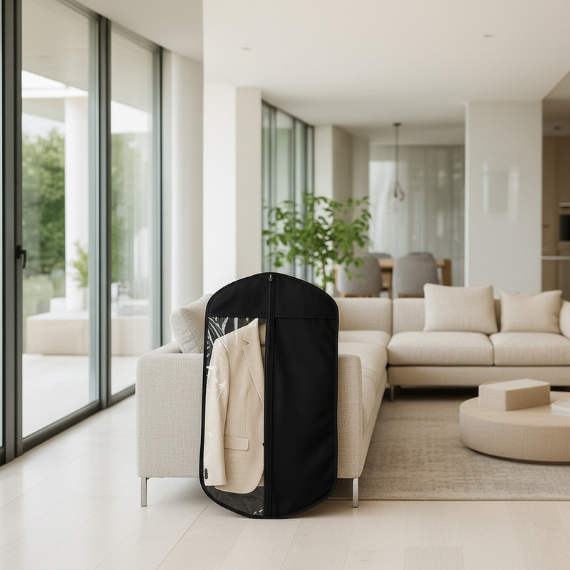 این بسته شامل 5 عدد کاور و 2 عدد آویز 3 خانه می باشد.کاور کت و شلوار ارگانو از جنس پارچه ضخیم و با کیفیت و یک سمت آن در جلو از طلق شفاف ساخته شده که متوجه لباس داخل آن شوید.این کاور زیبا در ابعاد 105 در 60 سانتیمتر تولید شده و شما میتوانید بدون نگرانی از ورود گرد و غبار یا بو گرفتن لباس های خود از آن استفاده نمایید.