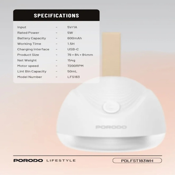 پرزگیر لباس پرودو مدل LFST183، یک دستگاه کوچک و قابل حمل است که برای طیف وسیعی از پارچه و لباسهای مختلف طراحی شده است . با استفاده از این دستگاه میتوانید لباسهایی از قبیل کت ، مانتو ، پالتو ، پارچه پشمی و پنبهای را به راحتی نو کنید و پرز های روی آنها را از بین ببرید