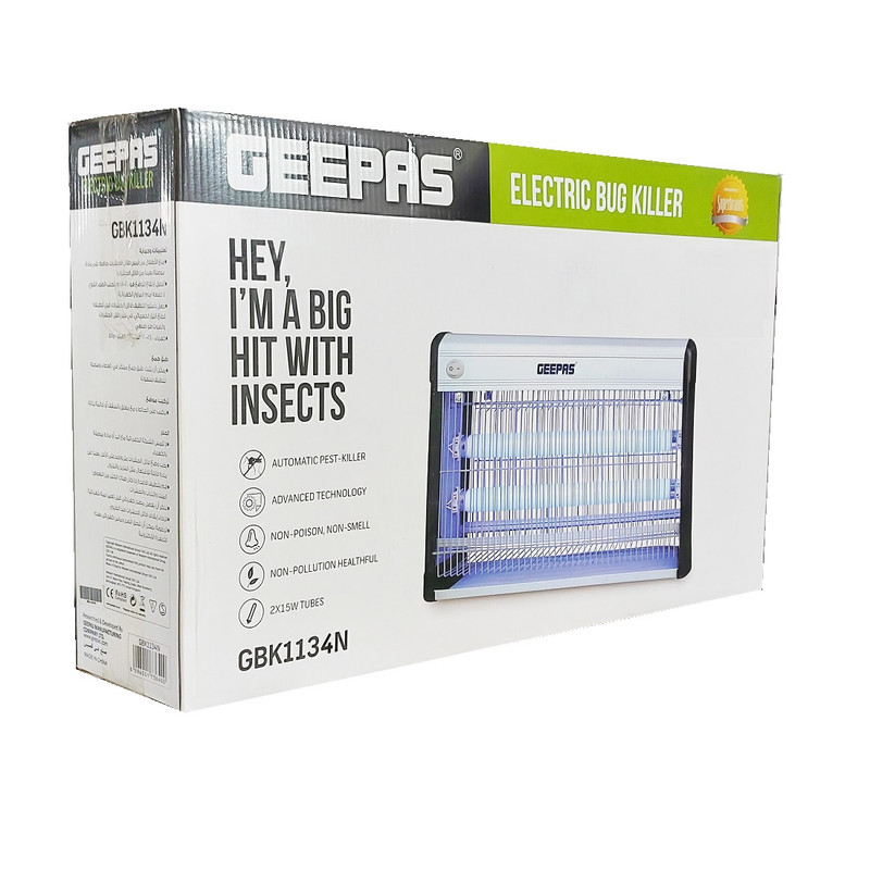برند جی پاس با دارا بودن بیش از 1500 کالا در زمینه لوازم خانگی و با 38 سال سابقه فعالیت ، یکی از برند های معتبر در آسیا و اروپا محسوب می شود . حشره کش برقی جیپاس مدل GBK1134N با استفاده از ولتاژ بسیار بالایی که با برد الکترونیکی ایجاد می شود و برقرار ساختن آن بین دو شبکه فلزی ( سیمی ) که در دو طرف آن دو لامپ فلوئورسنت با نور فرابنفش هر کدام با توان 15 وات ، قرار دارد ، حشرات پرنده را که به سمت نور فرابنفش جذب می شوند با تخلیه الکتریکی منهدم می کند و بقایای اجساد حشرات در پایین دستگاه در یک سینی پلاستیکی انباشته می شود که می توان هر چند وقت یک بار آن را به آسانی خارج کرده و تمیز کرد. . تغذیه دستگاه با برق 220 ولت شهری صورت می گیرد و در 3 شاخه دستگاه که به برق وصل می شود فیوز قرار دارد که از شبکه برق خانگی و دستگاه در برابر اتصال کوتاه و ... حفاظت می کند .